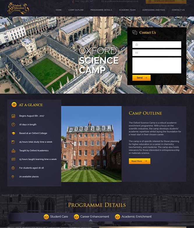 WordPress single-page Website for Oxford Science Camp