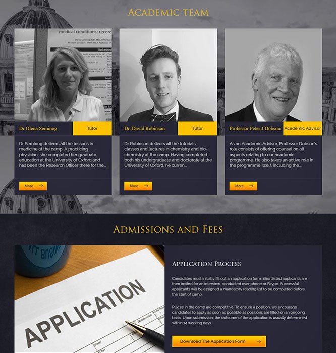 WordPress single-page Website for Oxford Science Camp