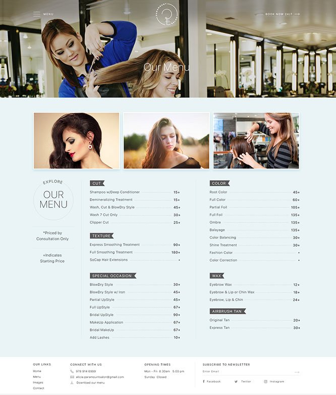 A wordpress CMS website for Paramount Salon
